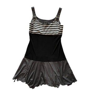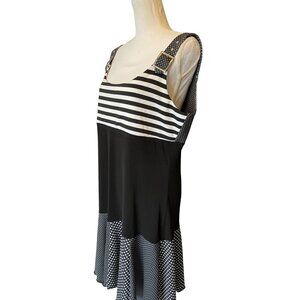 Bali Womens Dress Black & White Size 16 Polka Dot & Striped Sleeveless