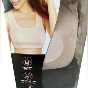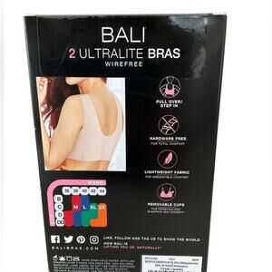 Bali wirefree bras in SandShell & Black. Lightweight and hardware-free. Removable cups for custom fit.