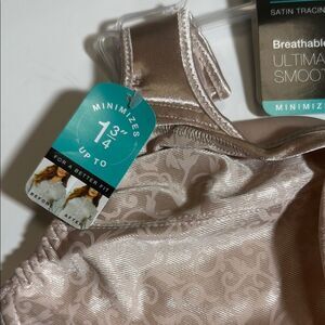 Experience ultimate smoothing with the Bali Satin Tracings Minimizer Bra. Designed for comfort and support, this cream-colored bra features a breathable back and underwire for a perfect fit.