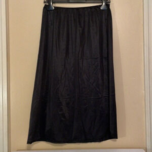 Bali women’s slip medium skirt black satin lace split midi nylon stretch elastic