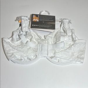 Elegant white lace bra with underwire support. Features stretch lace and full coverage cups.