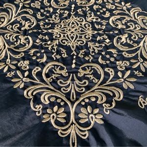 Hand Bag made of Nylon Fabric and Nylon Rope with a decorative emroidered pattern on the front side. There is a small pocket on the inside.