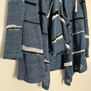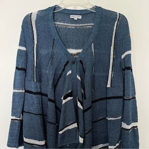 Ball Of Cotton Cozy Cardigan Sweater Linen Blend Waterfall Open Front Blue Small