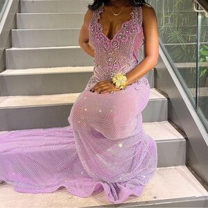 lavender/orchid color stone detailed dress