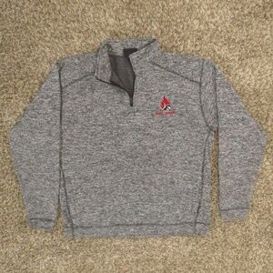 Ball State Sweatshirt Men's Large Gray Red 1/4 Zip Fleece Embroidered Pullover