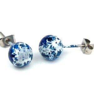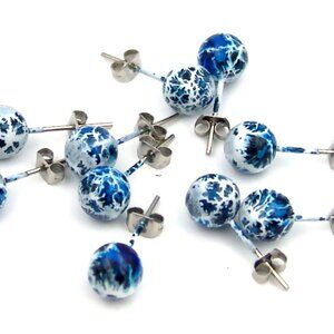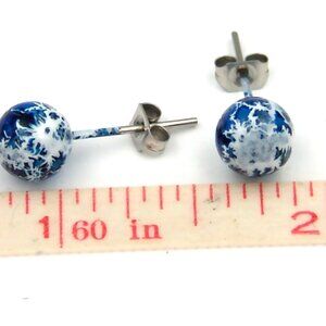 Ball Stud Earrings Hypoallergenic Surgical Steel Blue White Sensitive Ears