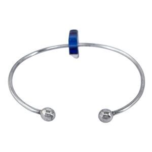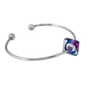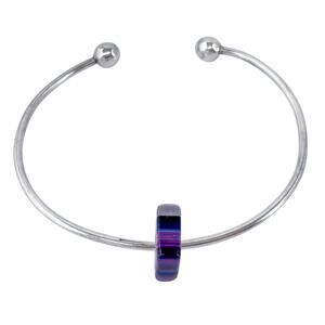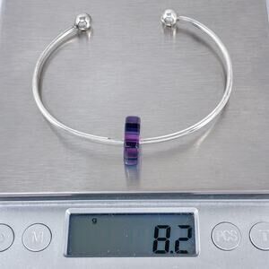 Ball Tip Cuff Bracelet | Purple Glass Charm | Vintage Sterling Silver 925 | 6.5"