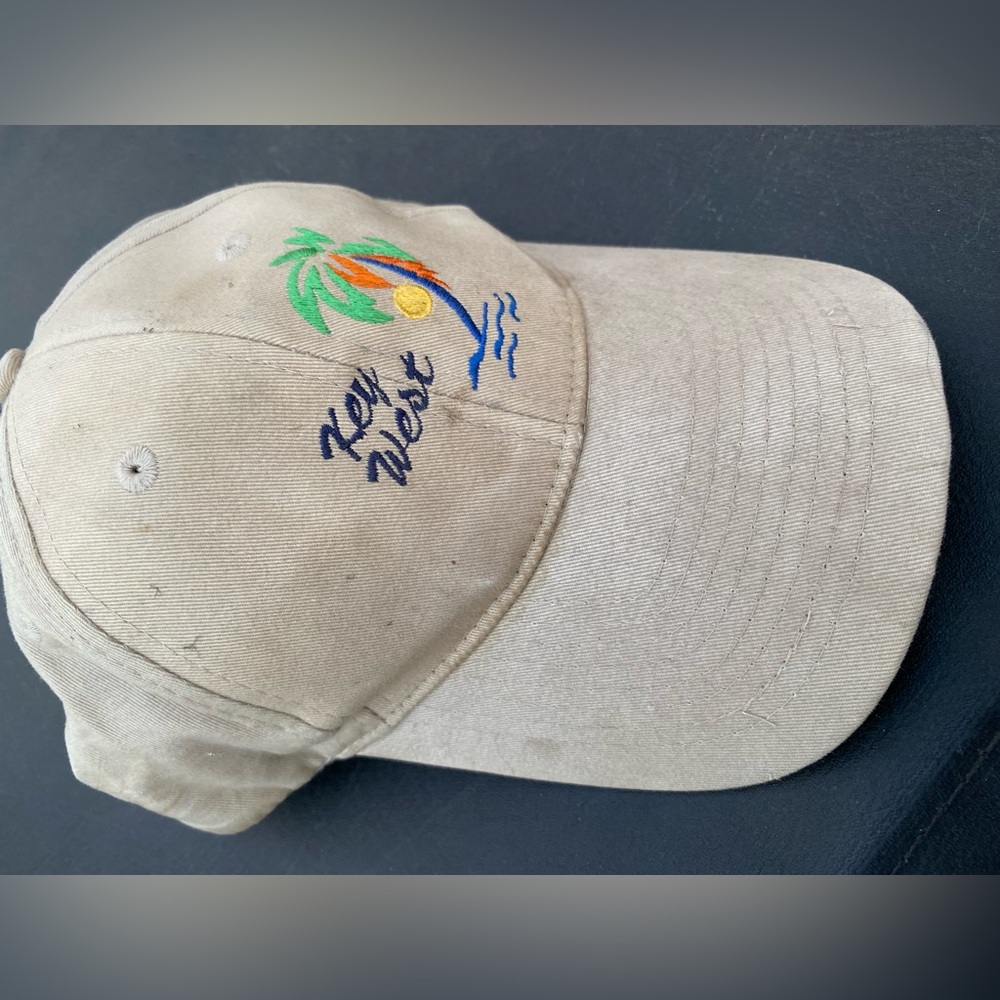 Key West ball cap. Adjustable, used, normal wear. Cream color