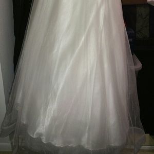 Bought at Davids bridal, worn once for a ball. Originally a 14, altered down to a 12. Also length was shortened for me. 5'1" with 4" heels and it just touched the ground so I had to carry it a bit