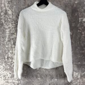 Balla Dahl Size S Mock Neck Roll Helm Fuzzy Sweater White Long Sleeve