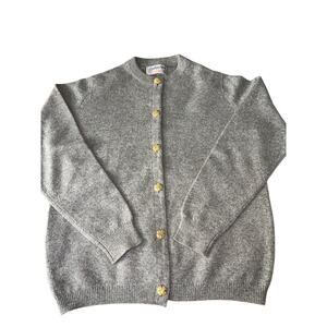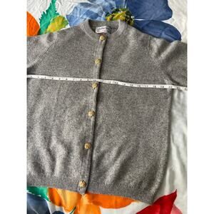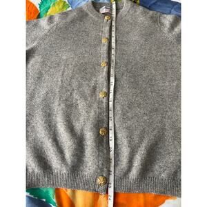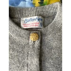 Ballantyne 100% Pure Cashmere Cardigan Sweater Gray Gold Button Scotland Size 40