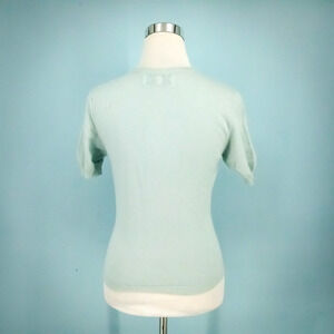 Ballantyne Scotland 1 Size Small S XS Light Blue Crew Neck Short Sleeve 100% Cashmere Knit Pullover Sweater Vintage