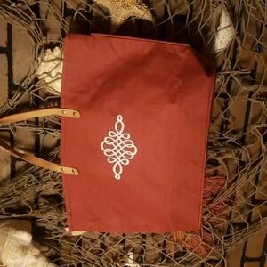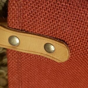 Ballard burlap tote. Perfect for shopping, beach and outdoor events. add a cute scarf or any bag ornament and you have a one of a kind bag. leather straps and zipper across. color is more like brown/ fall color.