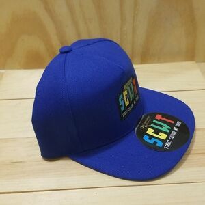 Baller Snapback with our signature SCWT patch embroidered on the front gold signature side right and logo parachute man left side. Under bill Street Culture We Trust Camo print. One Size Fits All ( Hustle Blue )Vintage old school style Plastic Snap Closure Back Brim: 7 inches wide, 3 inches long; Crown: 4 inches tall approx 100% Acrylic