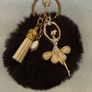 Ballerina Charm Keychain w/Pom Pom Tassel-Elegant Ballet Dancer Purse Charm –New