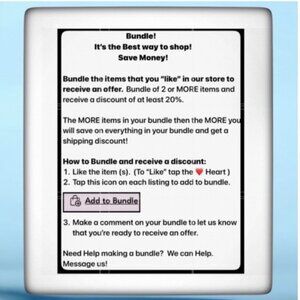 Leave a message for us on your BUNDLE if you are finished shopping ready to receive a BUNDLE offer for TWO (2) or more items or you can make us a reasonable offer.