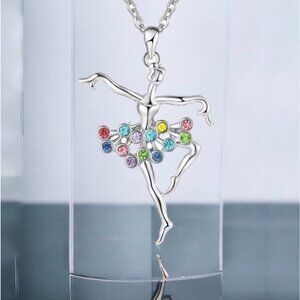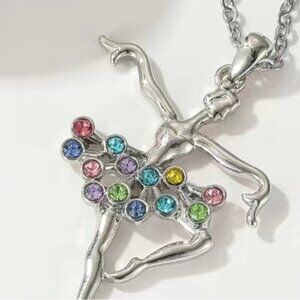 Ballet Ballerina Necklace Silver Tone Multicolor Sparkling Tutu Rhinestones