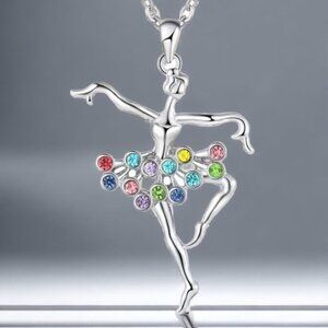 Ballerina Dancing Necklace Pendant Chain Creative Colorful With Gift Pouch