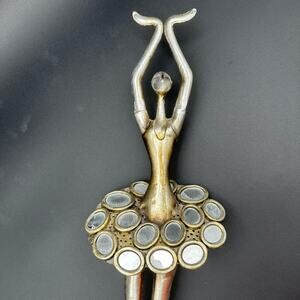 Ballerina Figurine Mirrored Skirt Fifth Position Metal Art Statue Figurine Set/2