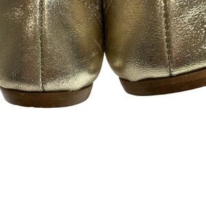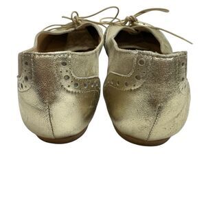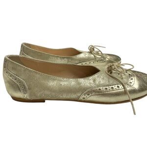 Ballerina Gold Tone Metallic Leather Wingtip Loafer Flats, 7