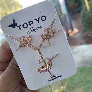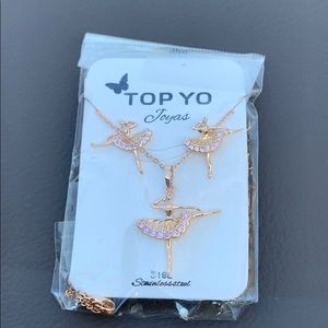 This ballerina jewelry set comes with one pair of ballerina earrings and a ballerina necklace!!💓 Brand New