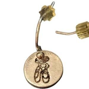 Ballerina theme interchangeable charms holder necklace on a silver tone chain link necklace. Each charm has its own securing hook clasp which is then affixed to the charm holder on the necklace. Four charms total including a ballerina, music note, ballerina slipper and a charm that is similar to the earrings with a pair of ballerina flats on front. Earrings are small round spheres with hook and plastic securing tubes. Adjustable extender chain attached.