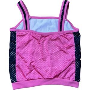 Kidcore sport ballet dance recital cute bright lightweight sporty athletic gymnastics style pink balletcore coquette aesthetic y2k pop star style pink mesh top early 2000s cheer tank dancewear streetwear girly aesthetic tumblr inspo kawaii kitschy indie sleaze nostalgia brat girl throwback retro sporty girlycore staple