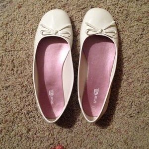 NWOT white ballet flats. Pink metallic interior. Size 4 1/2 girls or about size 6 women's.