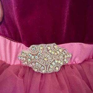 Beautiful velour sequin dance costume size medium. Very elegant used in a ballet recital. Worn once. It is a plum color with sequins around the bust and appliqué at the waist. Smoke free home.