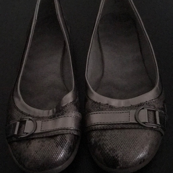 Silver very pretty flats with buckle accent.