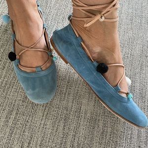 Adorable blue suede ballet flats by Spelta Milano, an Italian signature ballet flat designer, the new Penelope suede flats.