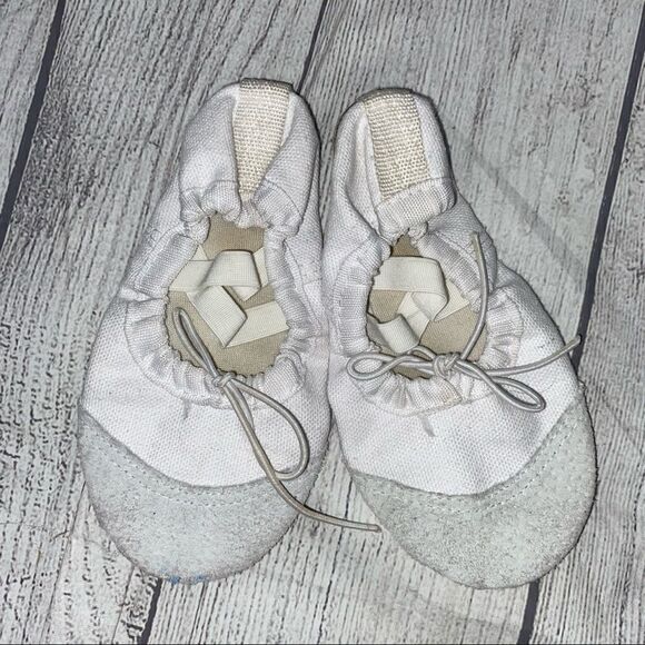 Ballet practice slippers white w/elastic band over top of foot little girls sz12
