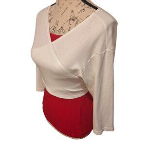 White cropped wrap ballet top – Flattering fit, 3/4 sleeves, soft & stretchy (no brand tag)