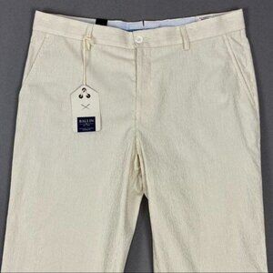 Ballin Mens Atwater Tan Khaki Seersucker Flat Front Pants Mansfield Fit size 38