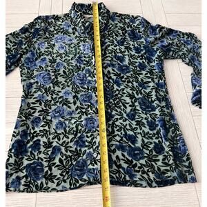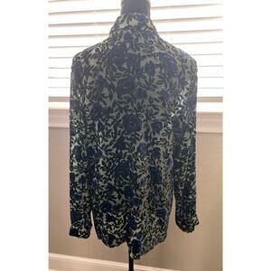Ballinger Gold blue velvet burnout floral long sleeve, collared, button down blouse. Size L. Super unique. Retro, boho. Rayon silk blend.