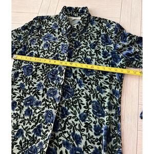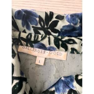 Ballinger Gold blue velvet burnout floral long sleeve, collared, button down. L