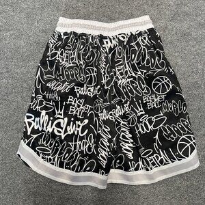 Ballislife Throwie Basketball Shorts Black & White Graffiti Print M