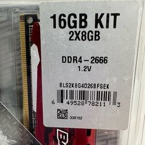 Ballistix Sport 16GB Kit 2x 8GB DDR4-2666 1.2V BLS2K8G4D26BFSEK Gaming Memory is NEW.
