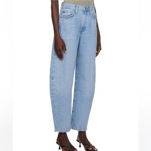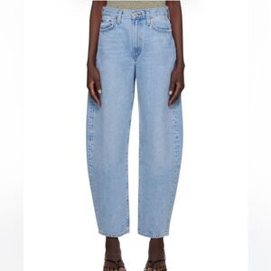 Balloon Barrel Jean Light wash Rigid Denim High Rise Oversized Blue Size 26 4