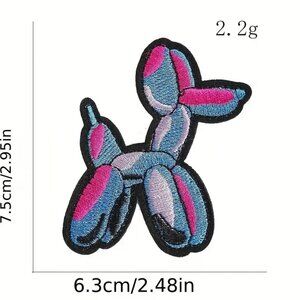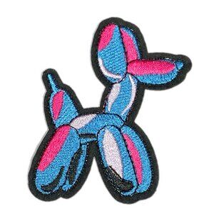 Balloon Dog Embroidered Patch Blue Pink Black Iron On