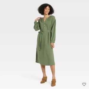 From running errands to grabbing a cup of coffee or casual date nights, this Balloon Long-Sleeve Tie-Front Shirtdress from Universal Thread™ makes a go-to piece for any occasion. Cut from cotton-blend fabric for breathable comfort, this balloon-sleeve dress features a crew neckline with half button-closure, tie-closure at the waist and a midi length, making getting ready for any day an effortless affair. Plus, the side pocket offers a little storage for your small personal items. Pair this dress with slip-on flats, casual sneaks or wedge-heel sandals to create your own unique ensembles.