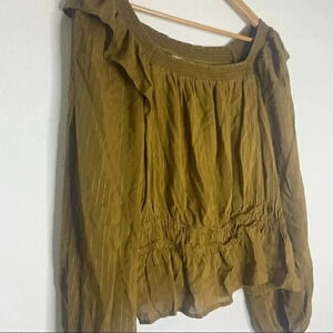 Balloon Sleeve green brown & golden metallic Peplum Blouse - Universal Thread xl