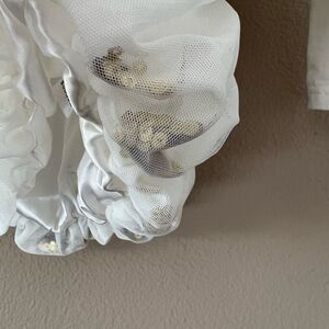 Super cute dress by Kardashian Kids! White long sleeve top with balloon tulle hem w/ gold sequins inside! Size 3 months. In great condition!