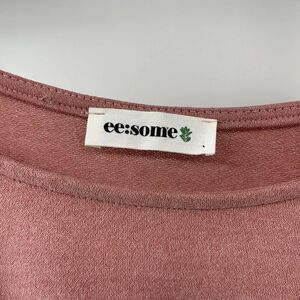 ee:Some Brand Pink Oversized Relaxed Fit Balloon Sleeve With Cuff Ties Boho Chic Blouse Gypsy Blouse Boat Neck Hi-Low Hemline