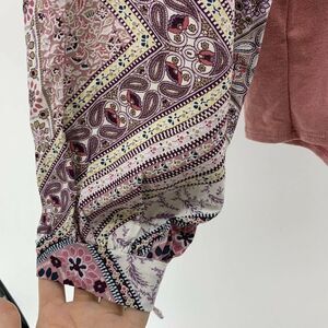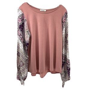 Balloon Sleeve Bohemian Top Pink Log Sleeve Blouse Relaxed Fit Small Paisley Top
