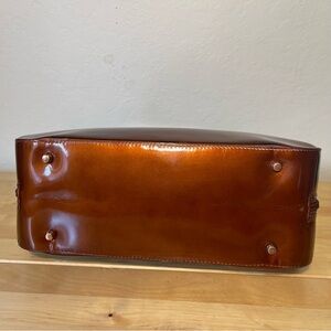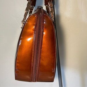 Bally B Logo Chain satchel bag hazelnut patent leather