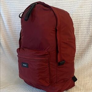 Elegant Bally Backpack With Pencil Holder in rich burgundy. Features a front zip pocket and sleek design.