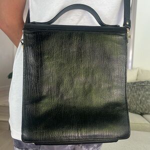Bally Bag Black Leather Top Handle Satchel with Crossbody Strap Vintage Handbag