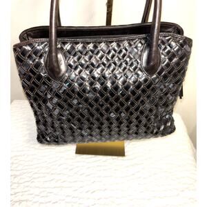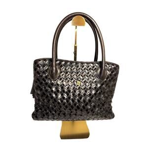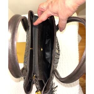 Bally Basket Weave Black Leather Top Handle Handbag. 3 compartments, Leather tassle. Preloved Minor wear and rubbing. See pictures for details.