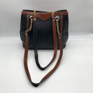 Features minor wear on the corners, slight hardware discoloration, and light distressing on the brown leather trim.